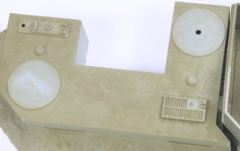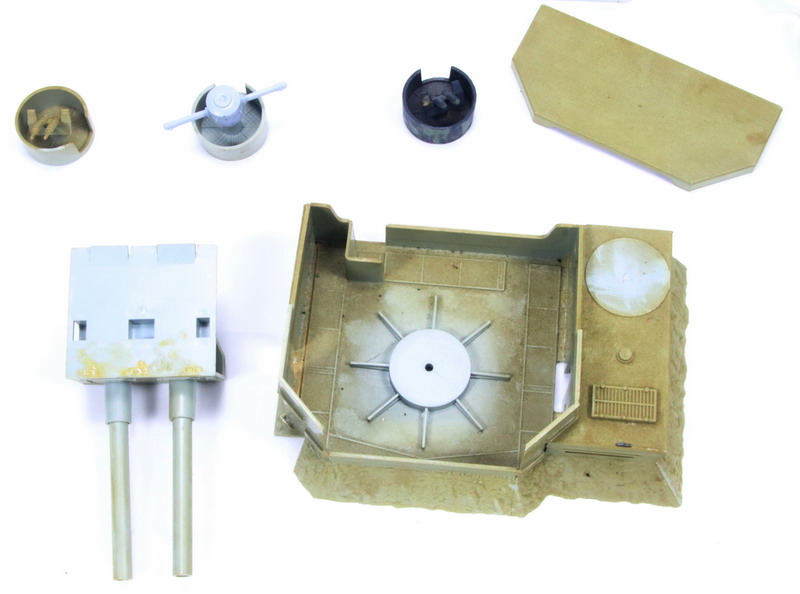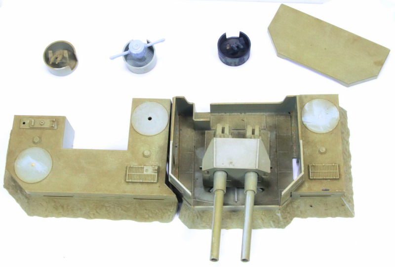 | Esta muy sucia de polvo, a una de las ametralladora dobles, le falta la parte final de los cañones y esta pintada, los dos pivotes de las torretas de las ametralladoras les falta el pivote de enganche, igual que al soporte de los cañones y creo que le falta la antena, ver fotos adjuntas |