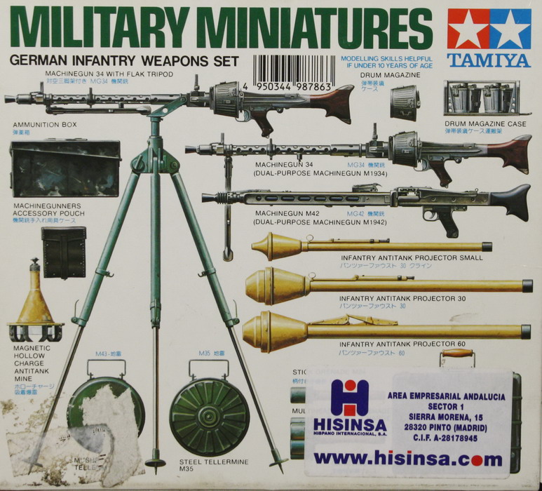 Modeling accesorios weapons set, German Word War Two, ref. 35111, 1/35, Tamiya Maqueta accesorios armas alemanas Segunda Guerra Mundial, ref. 35111, 1/35, Tamiya |