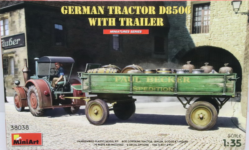 Modeling vehicle tractor, german industrial, mod. 1936, with cargo trailer, ref. 38033, 1/35, Miniart. |