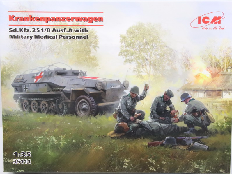 Modeling half track Sdkfz 251/8 & military medical personnel, ref. 35114, 1/35, ICM