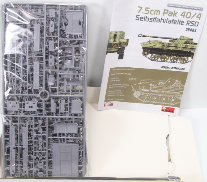 Modeling vehicle Steyr RSO, Selbstfahrlafette, 7.5 Pak 40/4, ref. 35483, 1/35, Miniart Maqueta vehículo Steyr RSO, Selbstfahrlafette, 7.5 Pak 40/4, ref. 35483, 1/35, Miniart |