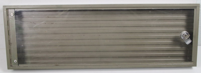 | Vitrina expositora con tapa transparente, tiene cierre mediante llave (se incluyen dos llaves), sus dimensiones son: longitud total de 60 cms, anchura de 20 cms y altura de 5, esta usada y la tapa algo rayada.